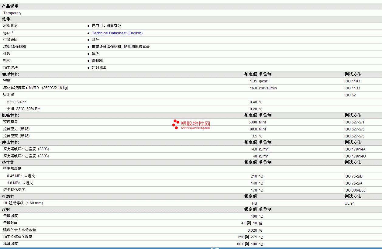 Anjacom PBT+ASA 465-GF15物性表详细内容如图
