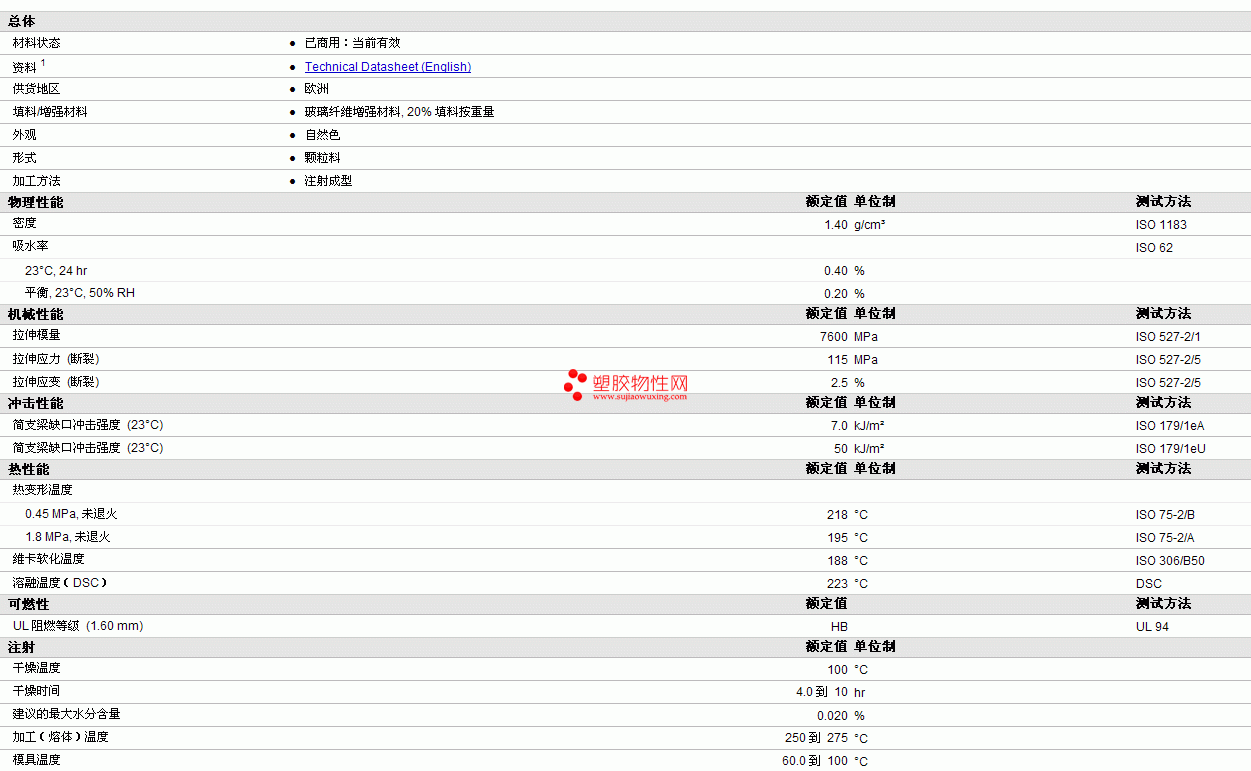 Anjacom PBT+ASA 465-GF20物性表更多资料见下图