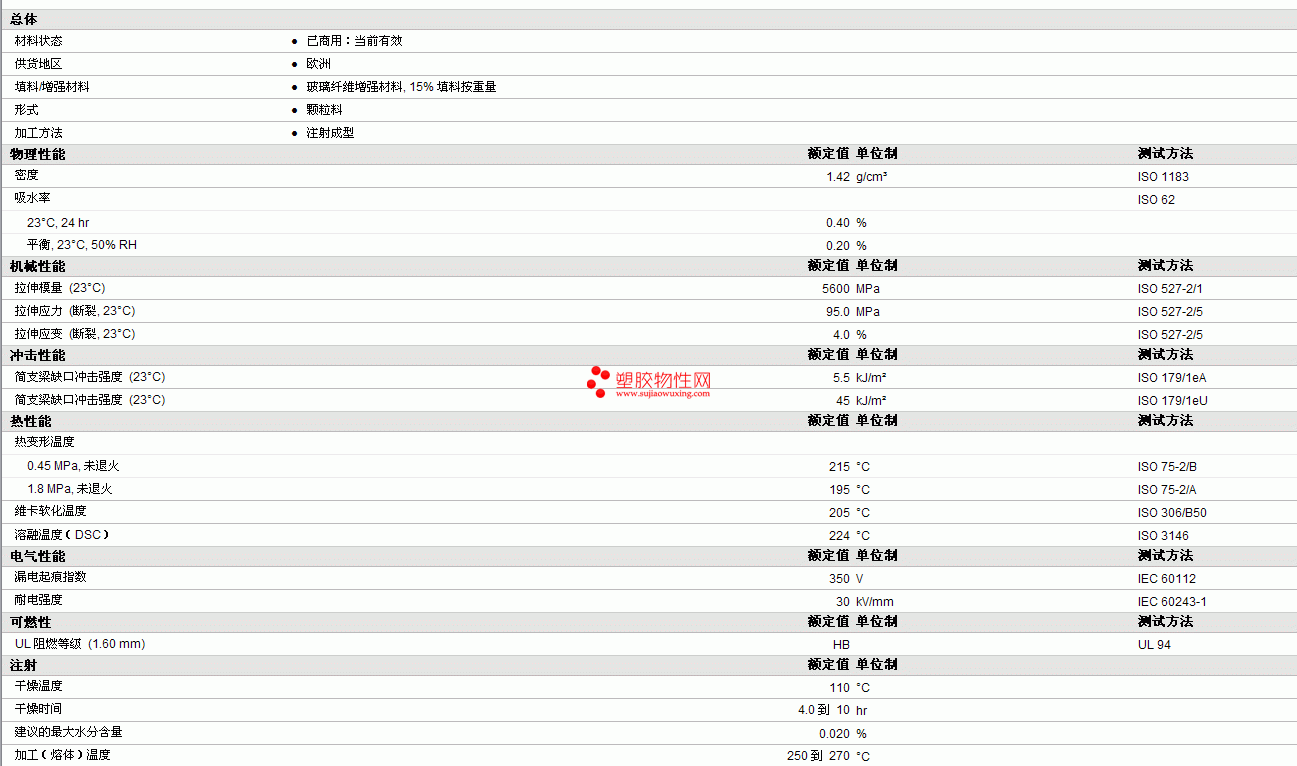 Anjadur® pbt 450-GF 15物性表详细内容如图