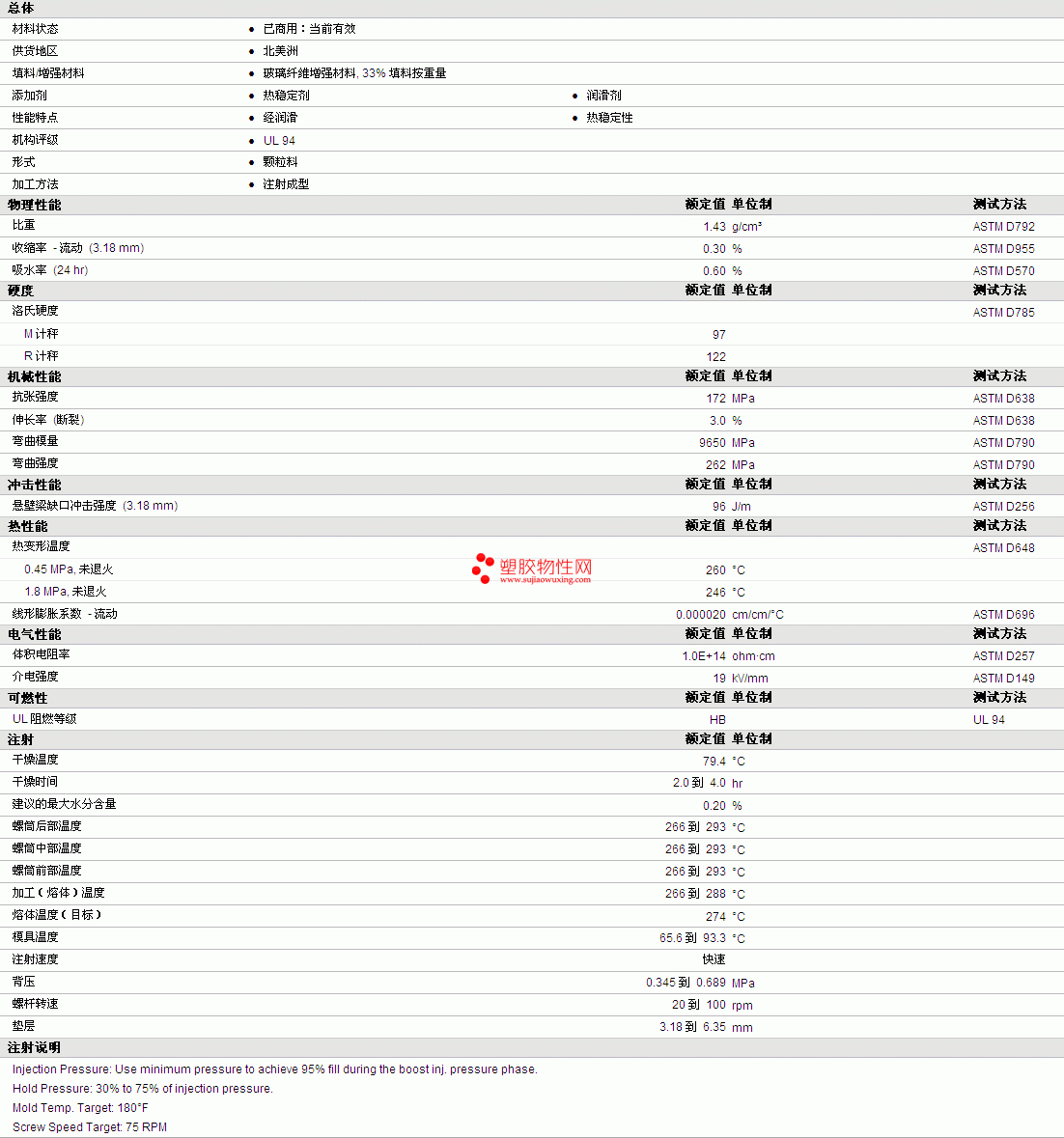 | 收缩率 - 流动 (3.18 mm) | 0.30 | % | ASTM D955 |