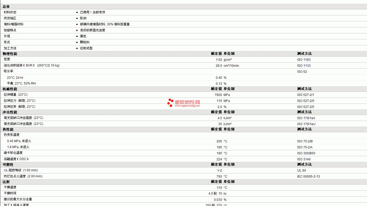 | 溶化体积流率(MVR) (260°C/2.16 kg) | 28.0 | cm³/10min | ISO 1133 |