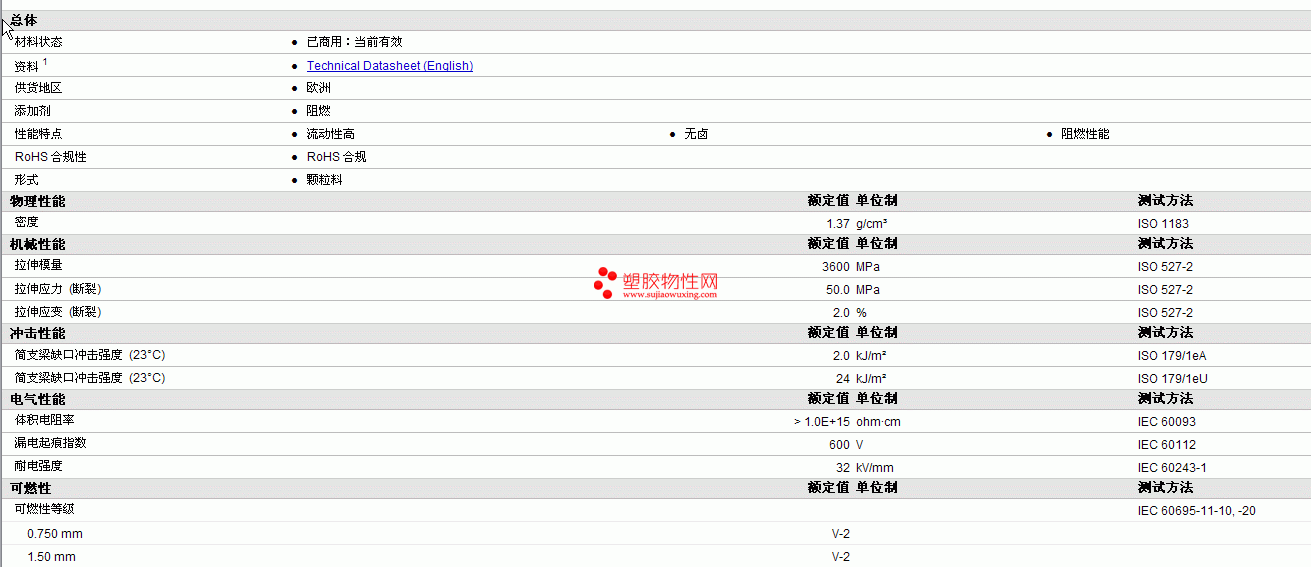 | 拉伸应变 (断裂) | 2.0 | % | ISO 527-2 |