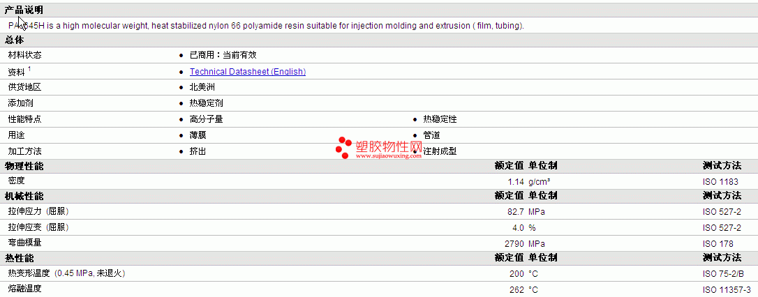 需了解Chemical Resources PA66 45H物性表材质证明、ROHS(SGS)报告、物质安全资料表(MSDS)、UL黄卡等可来电咨询QQ:767320520