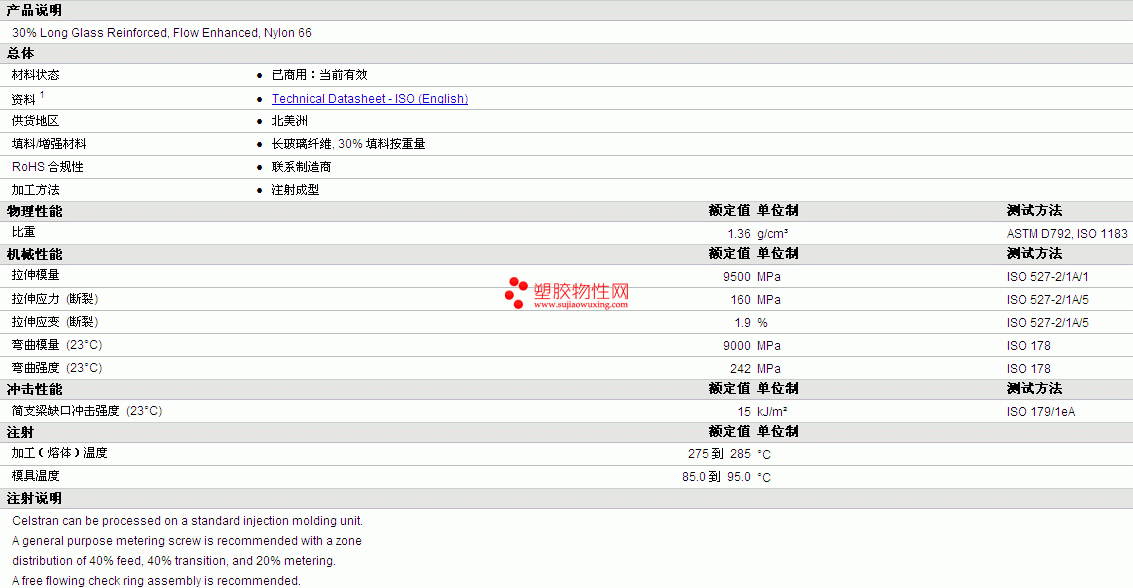 如需了解Celstran PA66 GF30-07物性表更多详情,ROHS(SGS)报告、物质安全资料表(MSDS)、材质证明、UL黄卡等,最新行情报价等可来电咨询或QQ:767320520