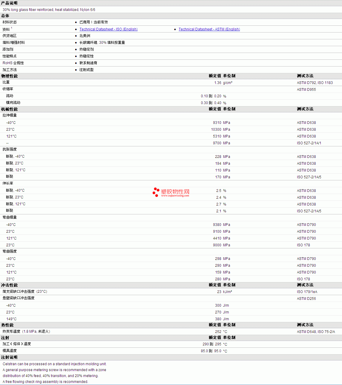 如需了解Celstran PA66 GF30-02 物性表更多详情,ROHS(SGS)报告、物质安全资料表(MSDS)、材质证明、UL黄卡等,可来电咨询或QQ:767320520