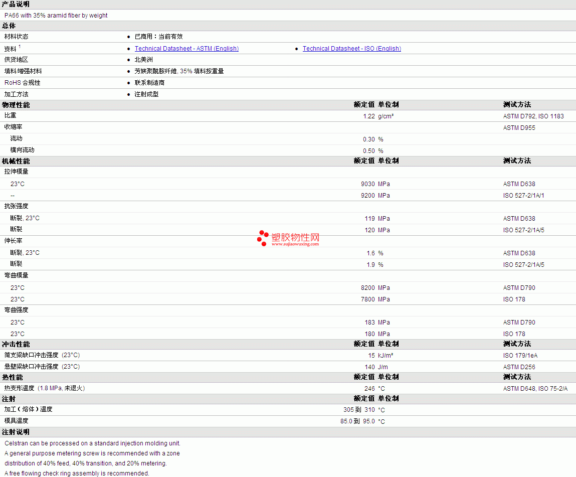 Celstran PA66 AF35-02-US物性表更多资料见下图