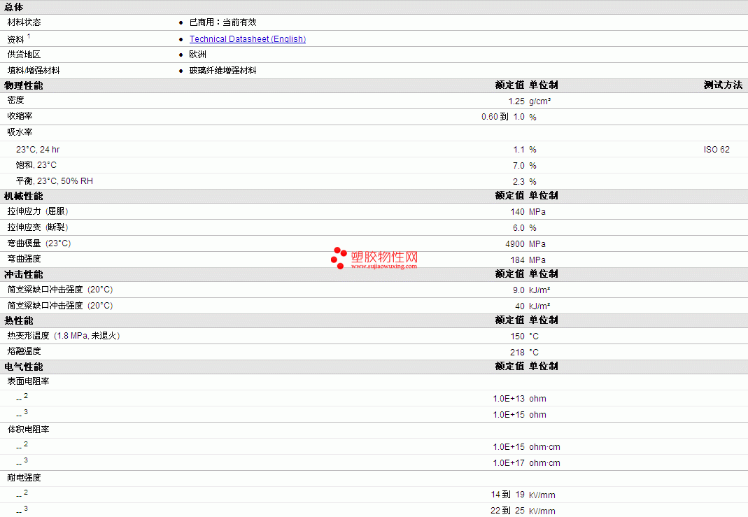 ARMAMID PA6 NE 15-1E物性表 详细情况如图