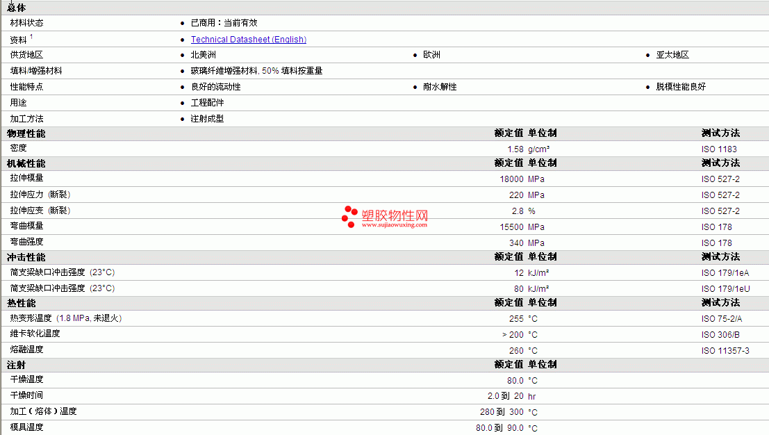 ALTECH PA66 A 2050/576 GF50物性表详细情况如图