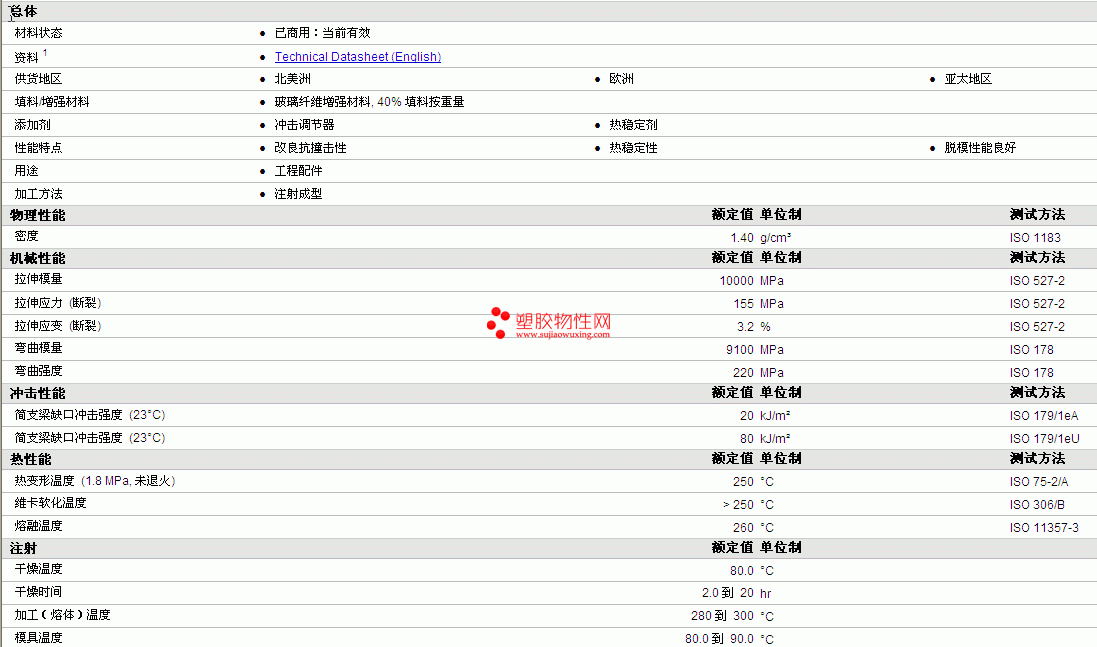 ALTECH PA66 A 2040/310 GF40 IM物性表详情如图