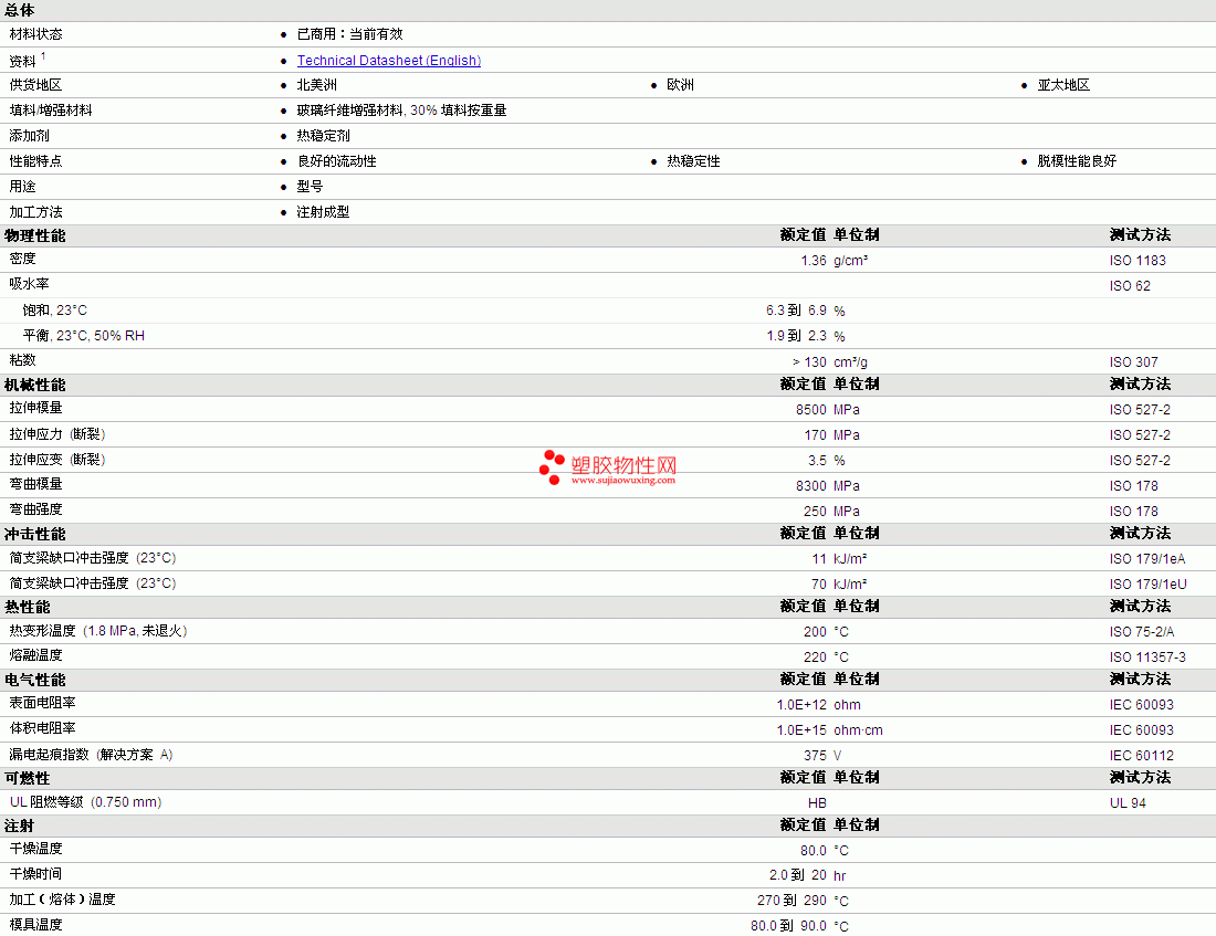 ALTECH PA6 B 2030/109 GF30 物性表详情如图