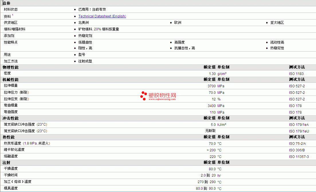 ALTECH PA6 A 4020/100 MR20物性表详情如图