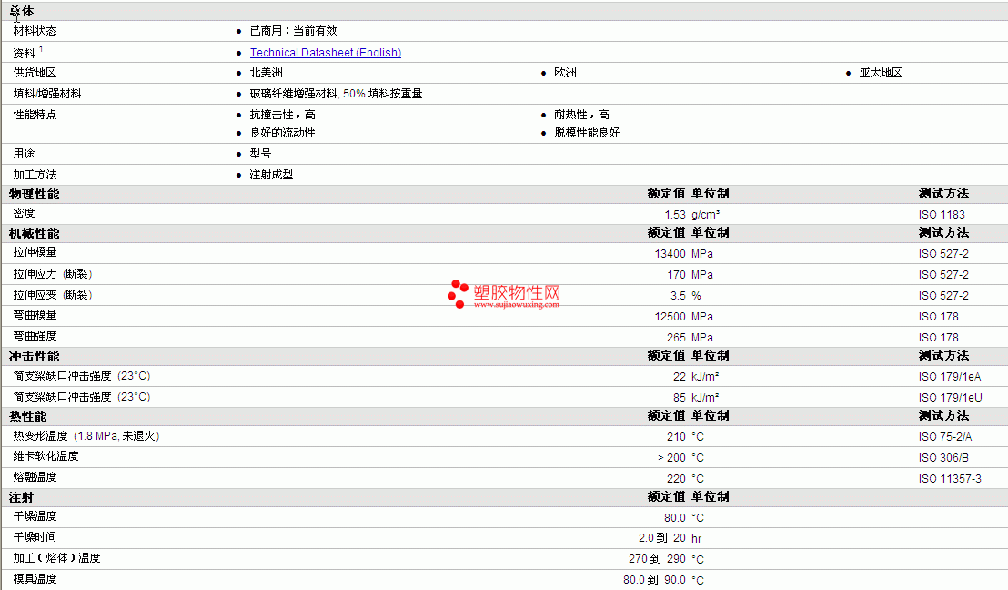 ALTECH PA6 A 2050/310 GF50 IM物性表详情如图所示