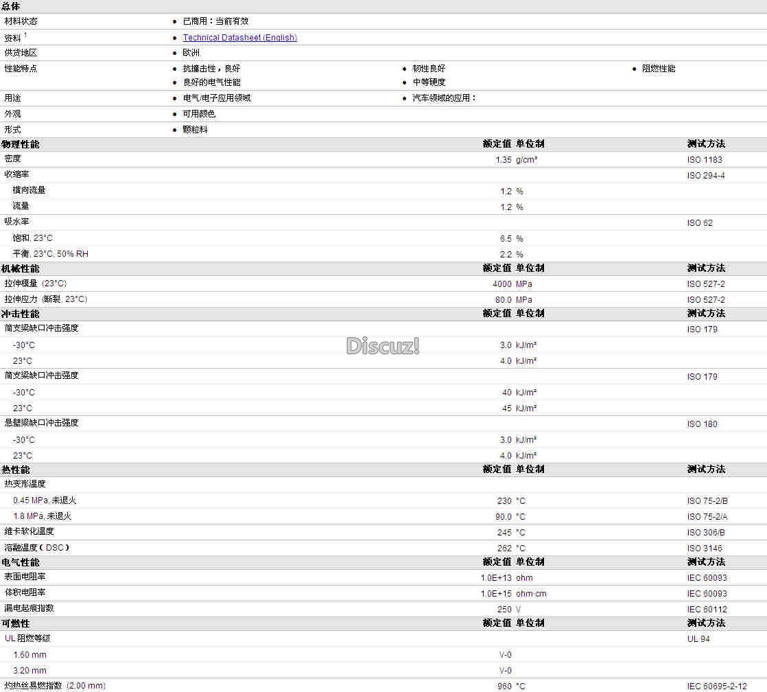 Melos PA6.6 NA40 NL XA 20物性表资料详情见图