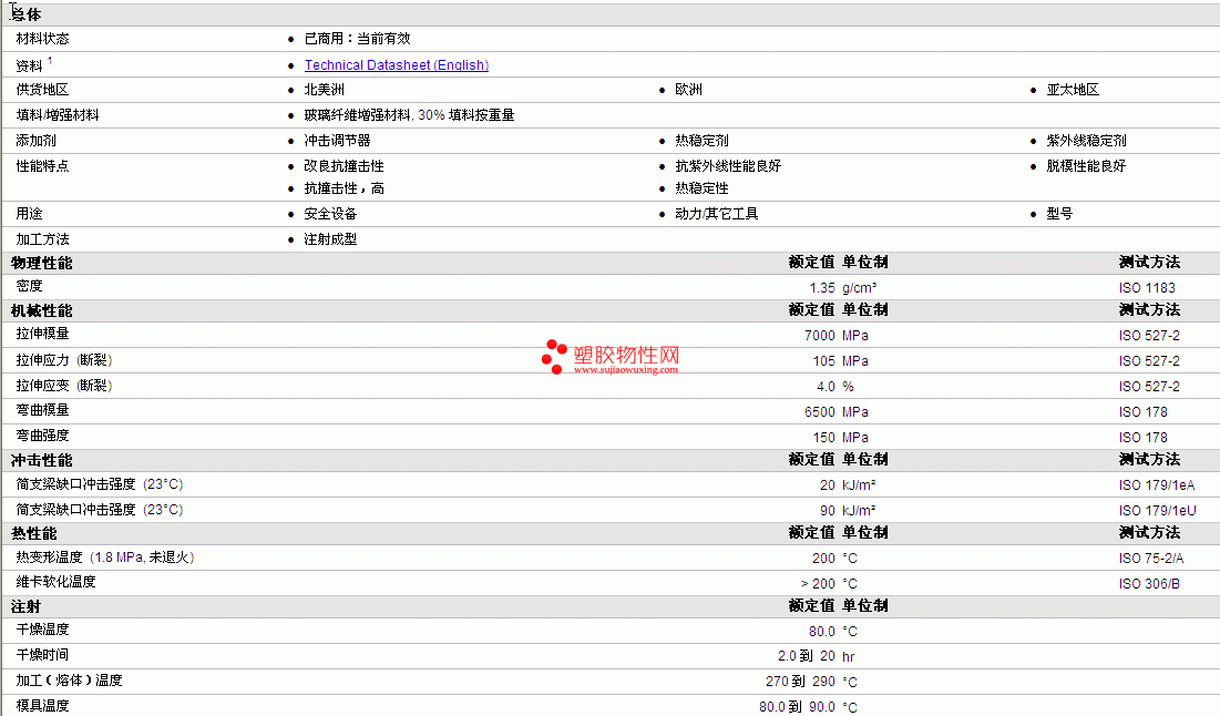 ALTECH PA6 A 2030/212 GF30 IM UV物性表详细情况如图