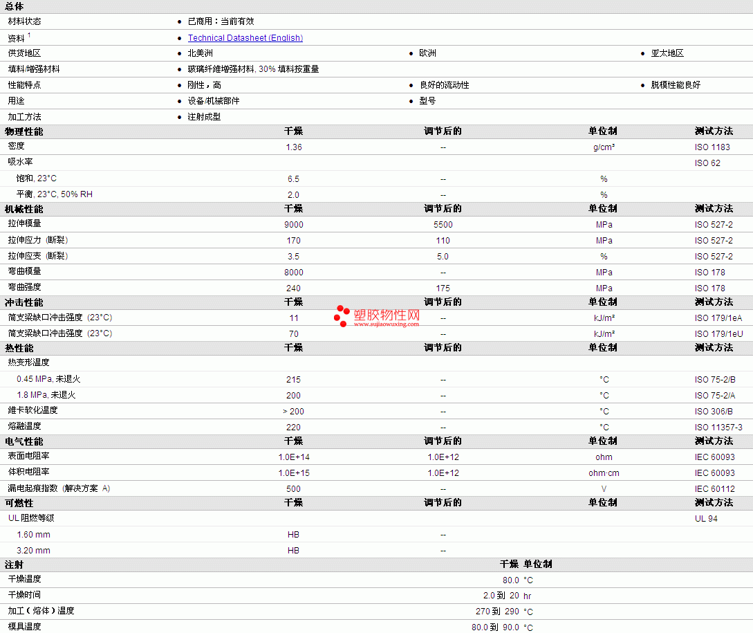 ALTECH PA6 A 2030/209 GF30物性表详情见附件