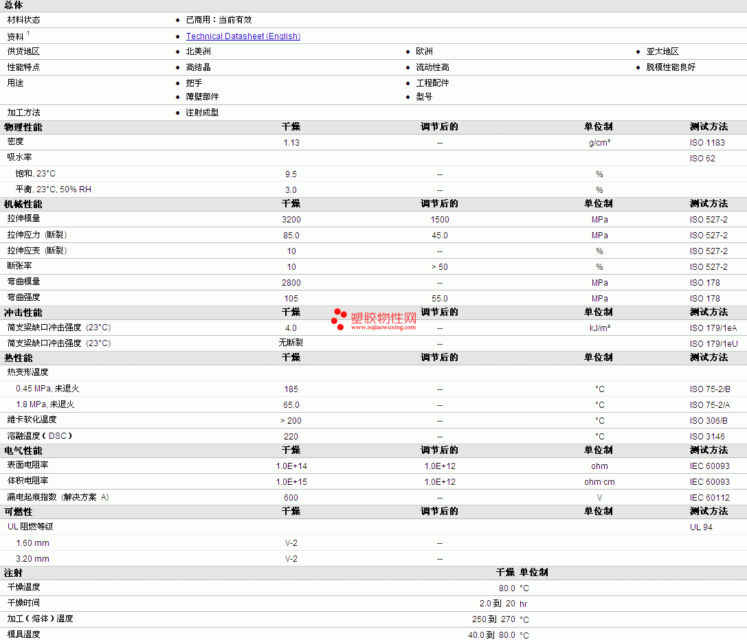 ALTECH PA6 A 1000/109物性表更多资料见下图