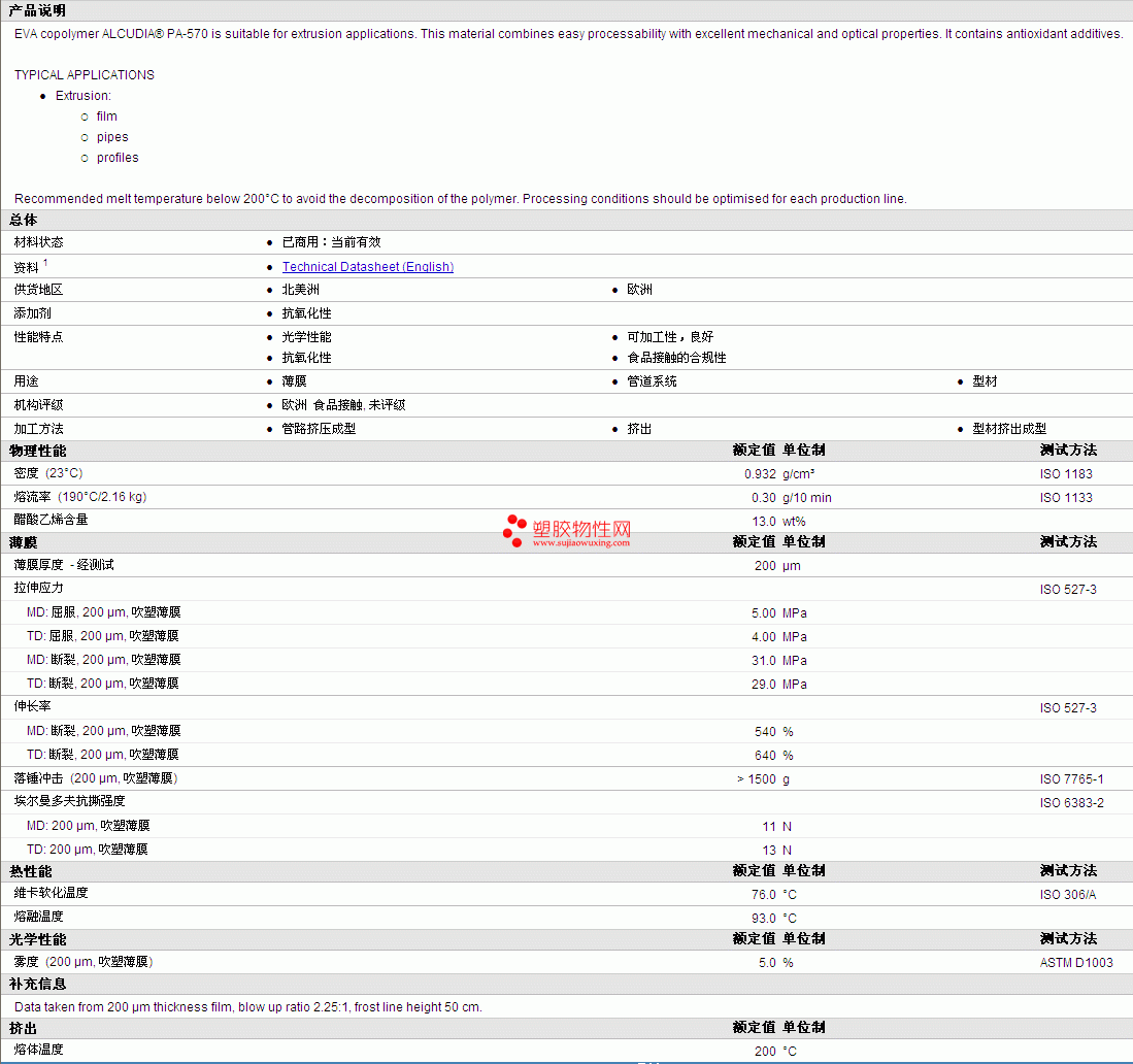 ALCUDIA PA/EVA 570 物性表详情见附件