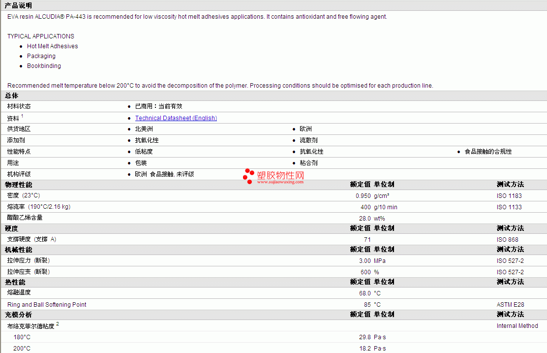 ALCUDIA PA-EVA 443 物性表详情见附件