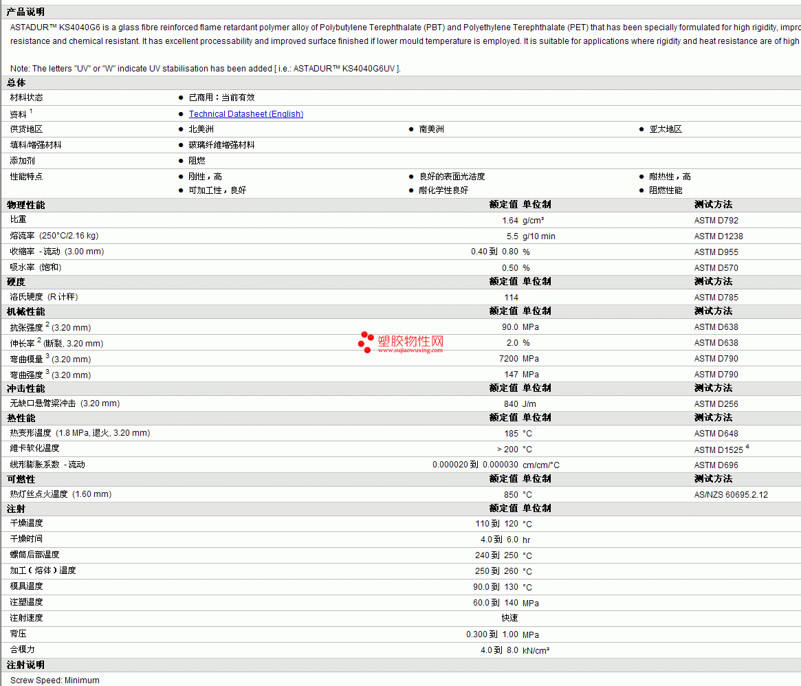 ASTADUR pbt+pet KS4040G6物性表详细内容如图