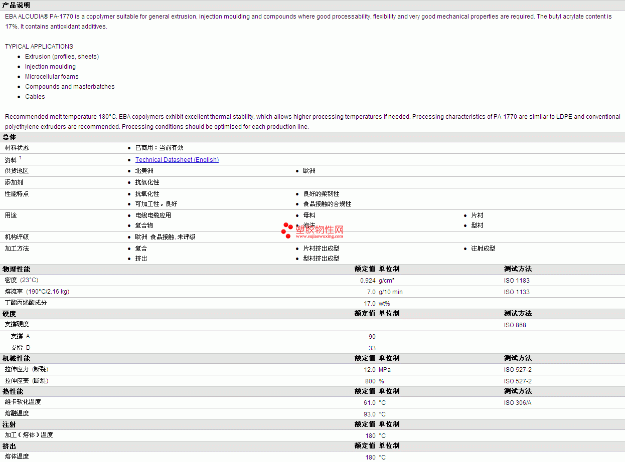 ALCUDIA PA-EVA 1770 物性表详情见附件