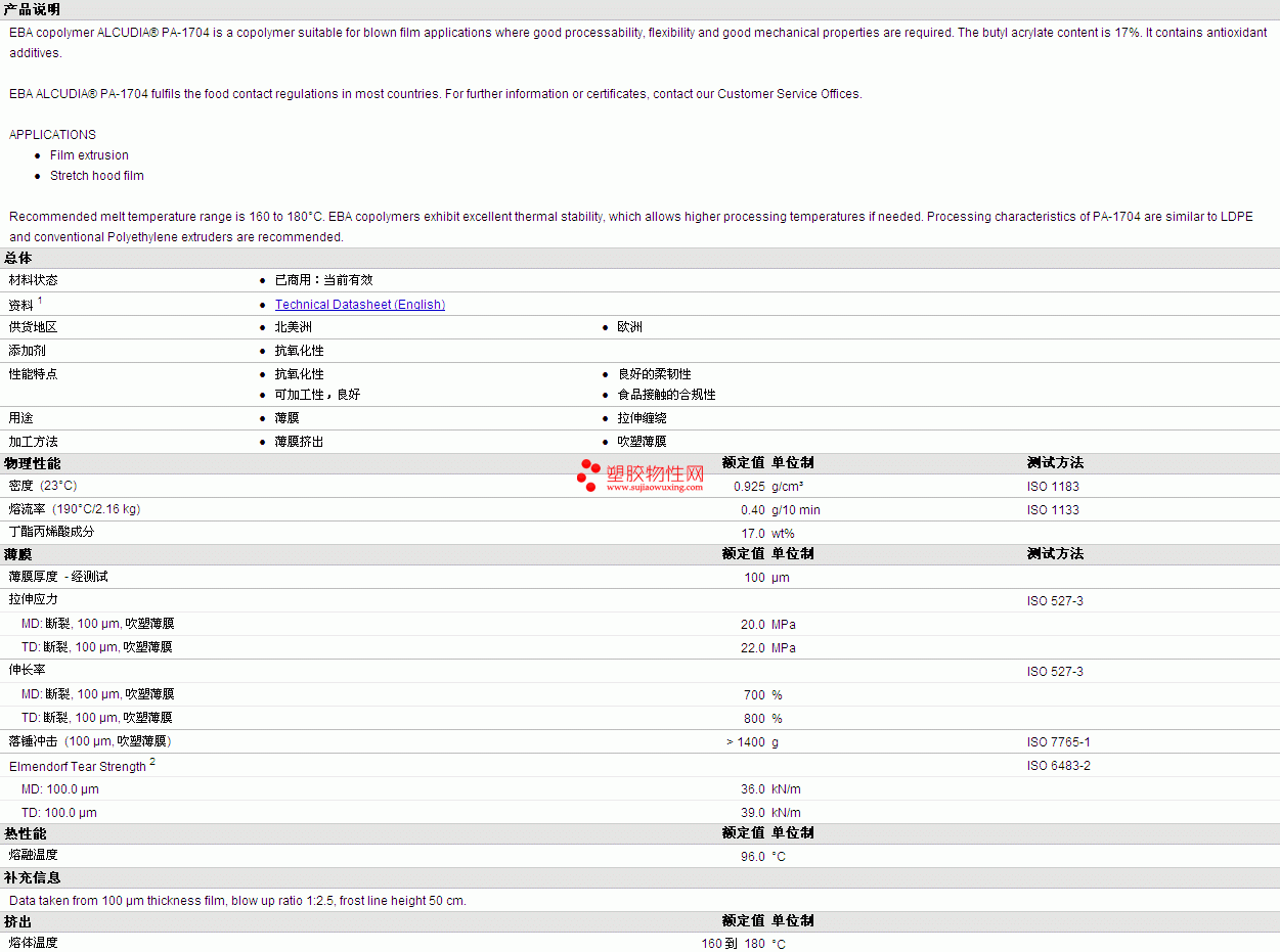 ALCUDIA PA-EVA 1704 物性表详情见附件
