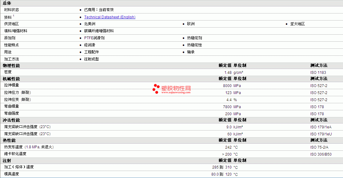 ALCOM PA66 910/8 GF30 PTFE15物性表详细情况如图