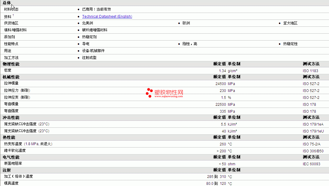 ALCOM PA66 910/1.1 CF40物性表详细情况如图