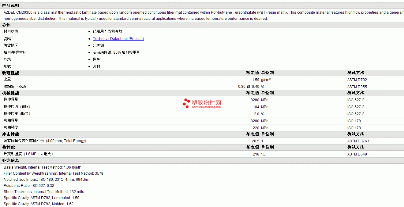 AZMET pbt CM20350物性表更多资料见下图
