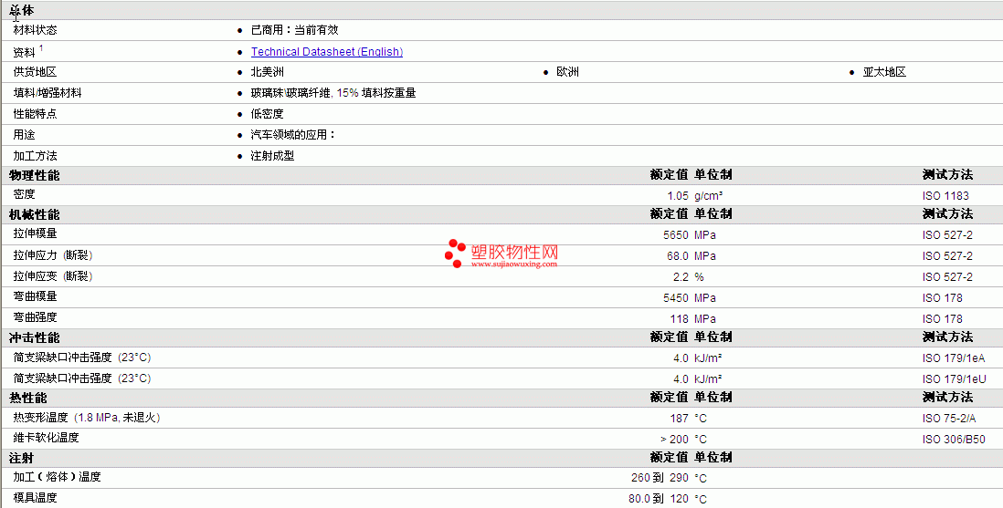 ALCOM PA6 900/14 GF15 HGB物性表详细情况如图