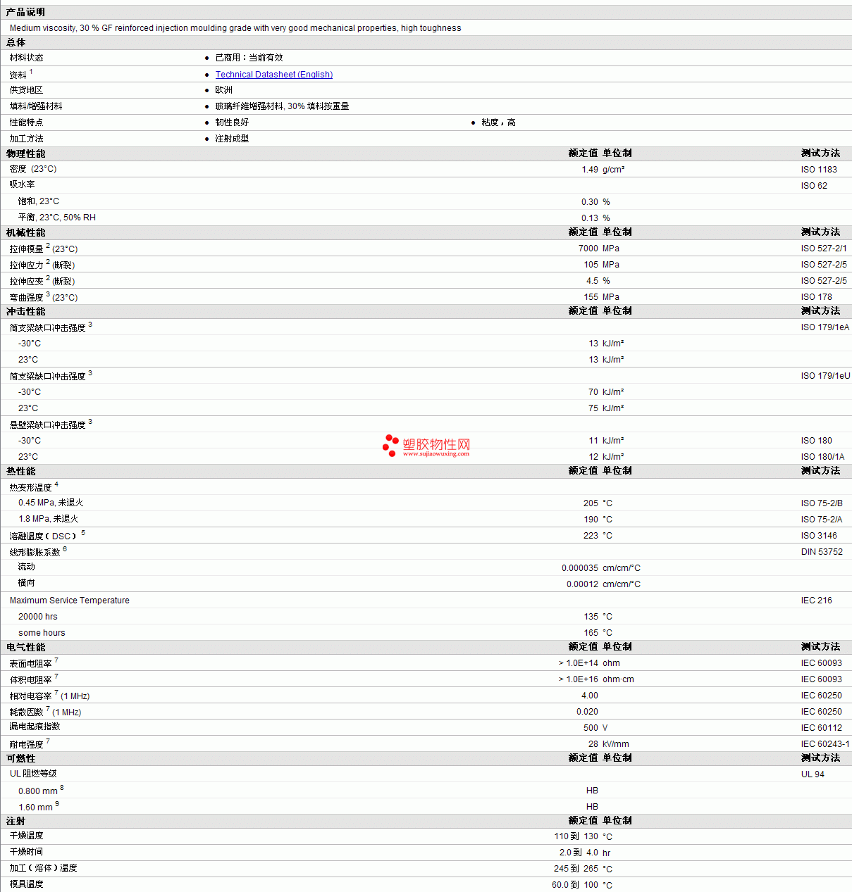 Badadur PBT8 GF30 TM-Z2物性表更多资料见下图