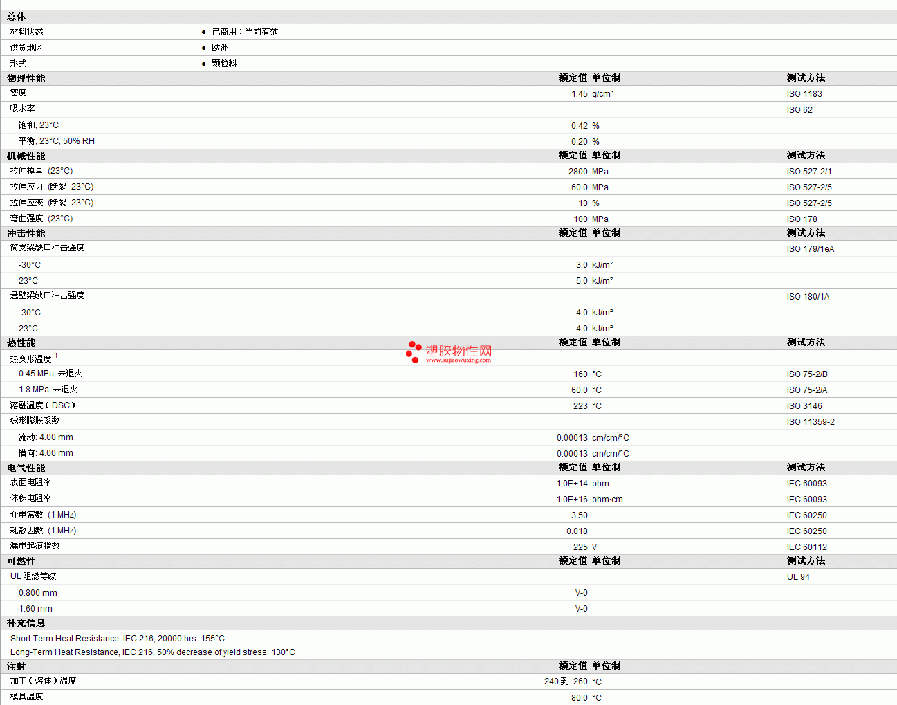 NORYL PPE FXN4020H Resin 物性表