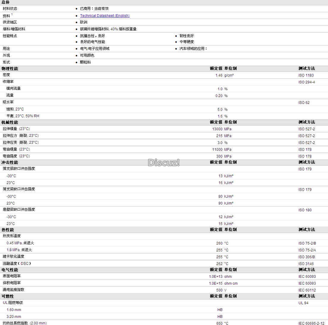 Melos PA6.6 NA40 GR40 NL物性表资料详情见图