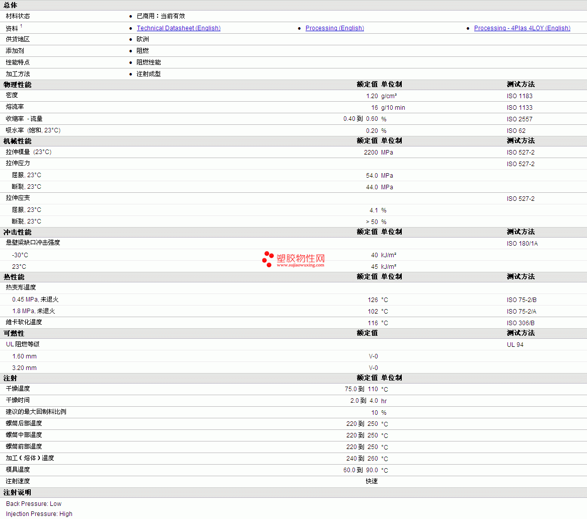 4LOY PC 10E27200 FR1物性表如图所示