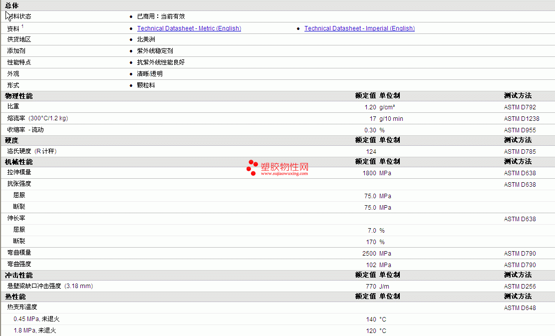 ACCUCOMP PC POL055UVL 物性表详细情况如图