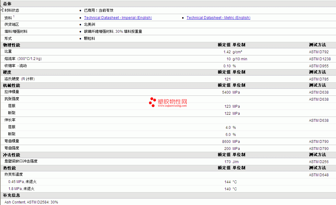 玻璃纤维增强材料, 30% 填料按重量