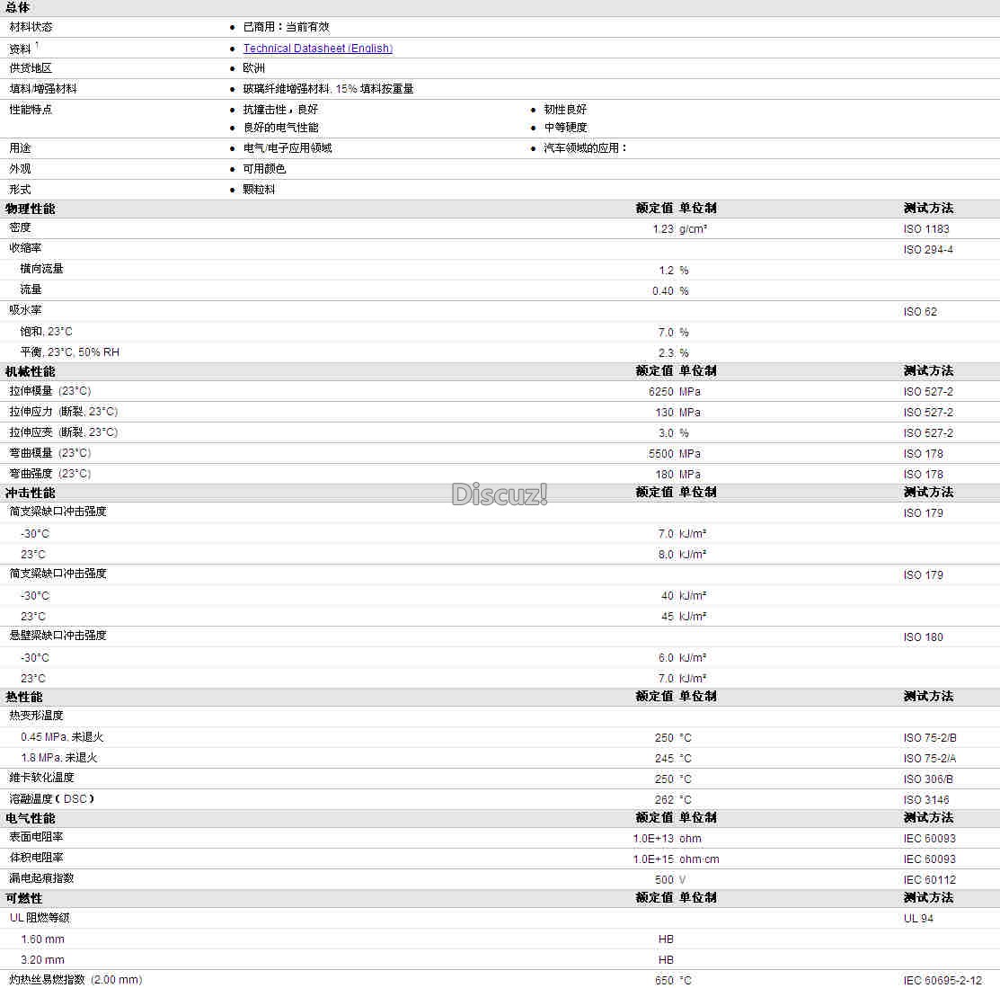 Melos PA6.6 NA40 GR15 NL物性表详细内容如图