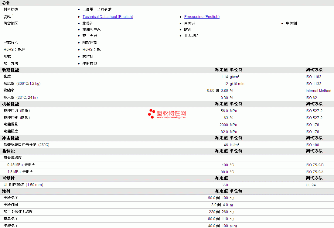 AIE PC/ABS A2200FR-3070物性表详情见附件