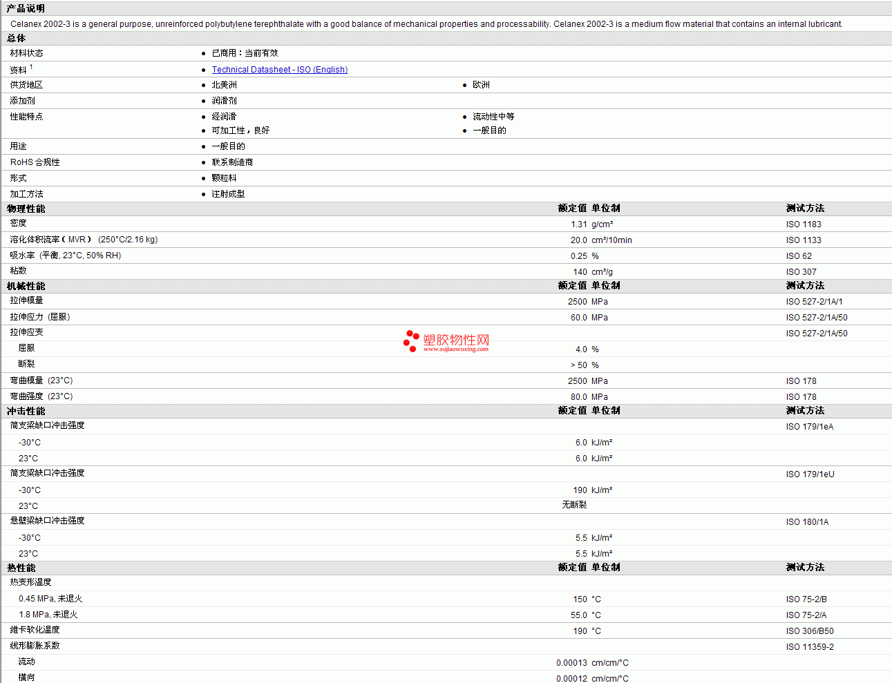 | 溶化体积流率(MVR) (250°C/2.16 kg) | 20.0 | cm³/10min | ISO 1133 |