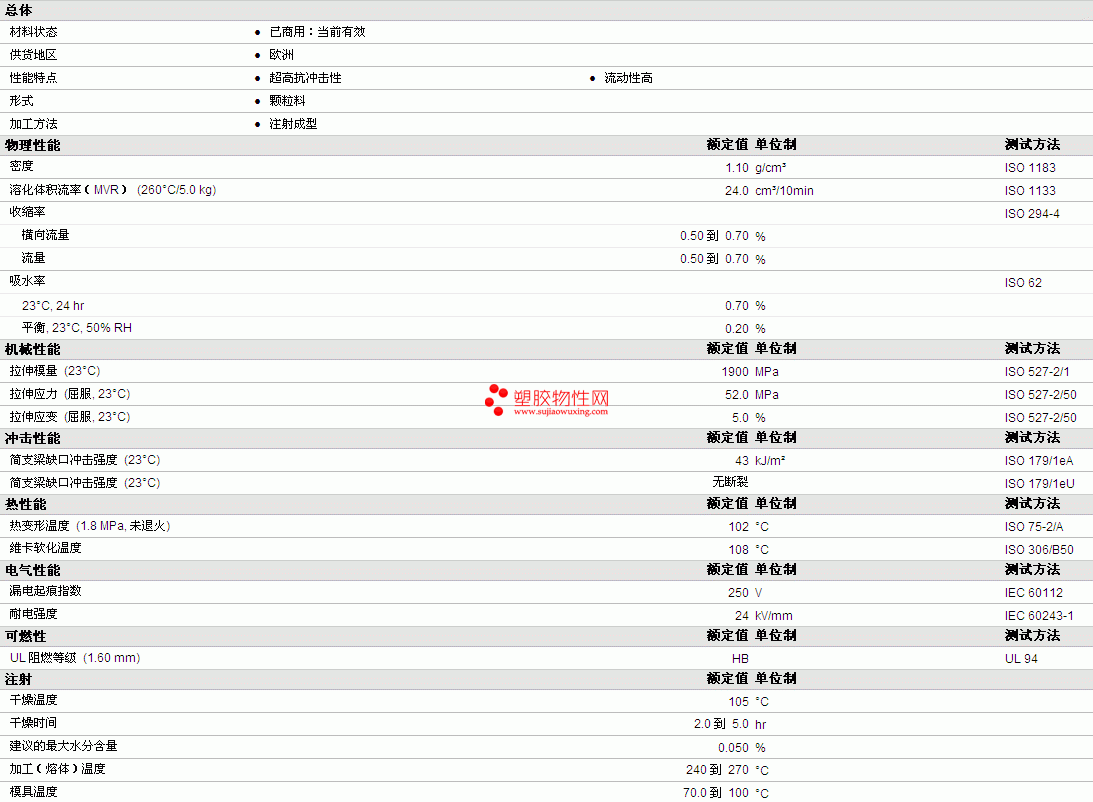 Anjablend ABS+PC A J050/45S 物性表详情见附件