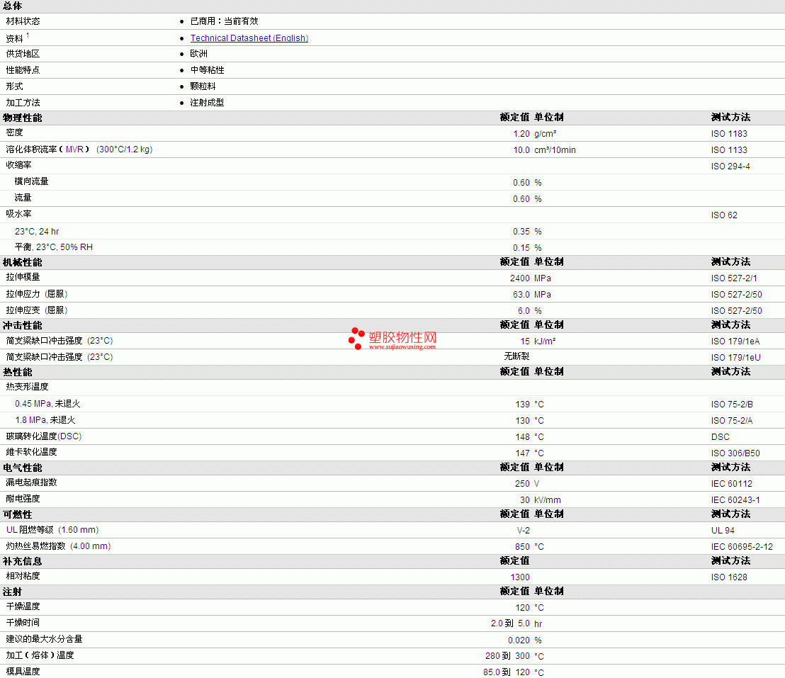 Anjacom PC 100X 物性表详细情况如图