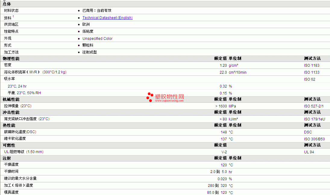 Anjacom PC R100V 物性表详细情况如图