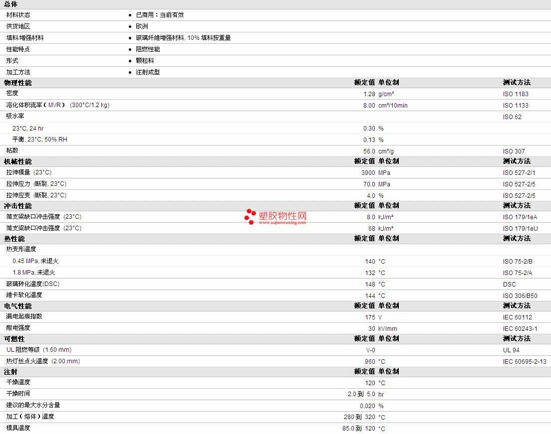 Anjalon PC J150-FR/GF10 物性表详情见附件