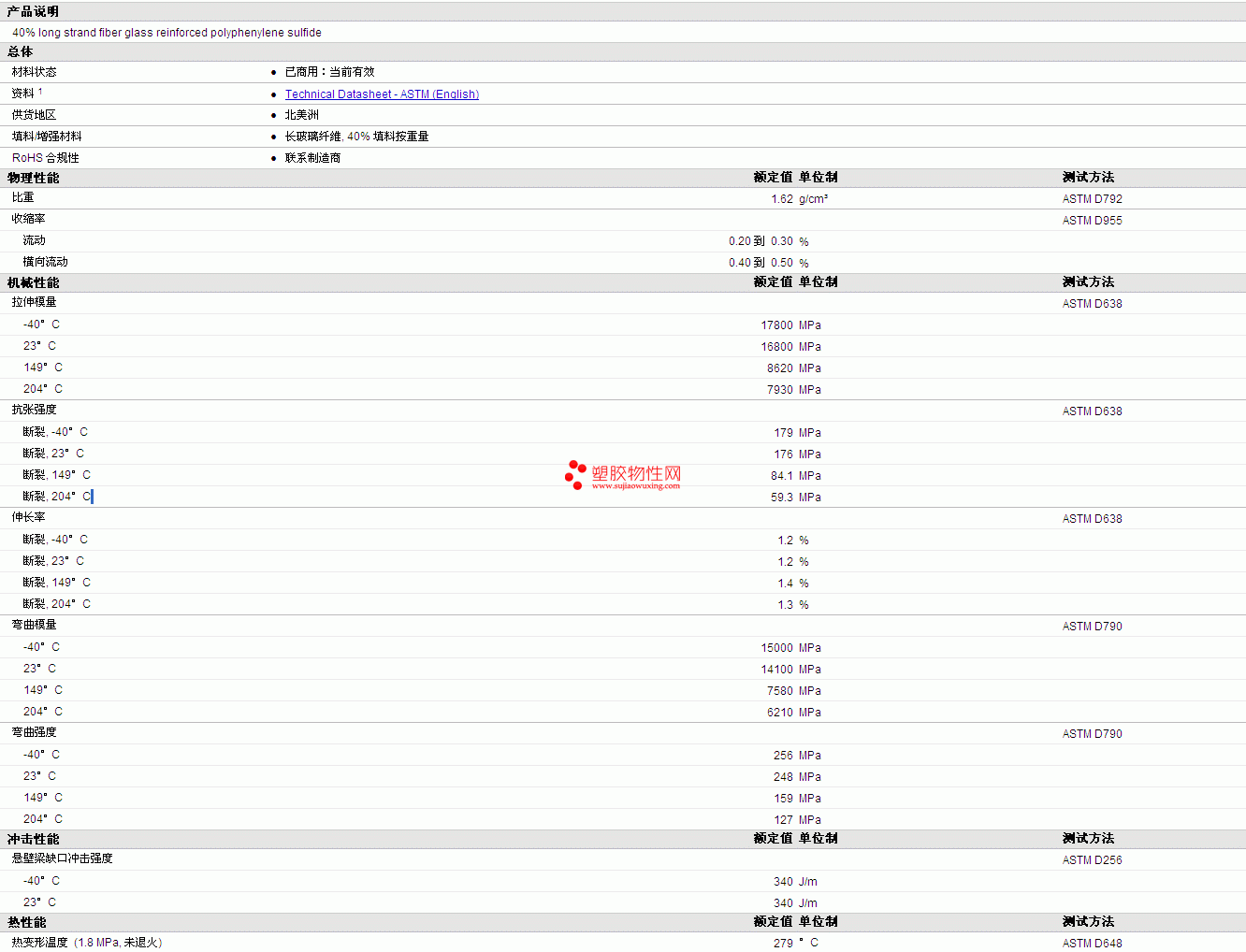 CelstranPPS-GF40-01 物性表 详细情况如图