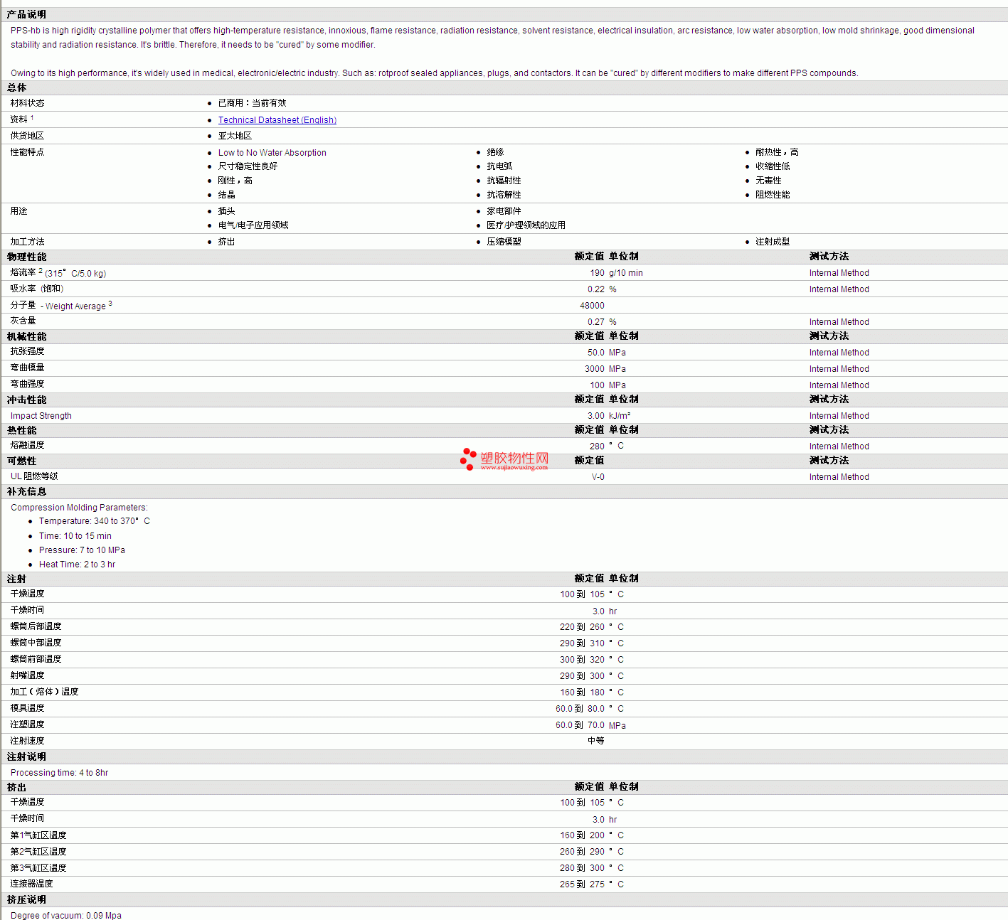 China PPS hb物性表 详细情况如图