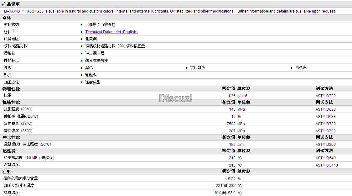 MAXAMID PA6 STG33-BK10物性表详细内容如图
