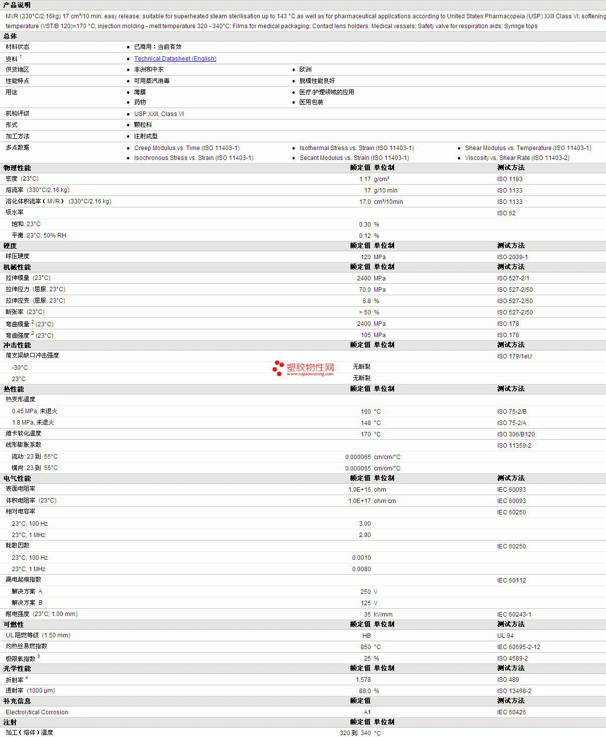 Apec PC 1745 物性表详细情况如图