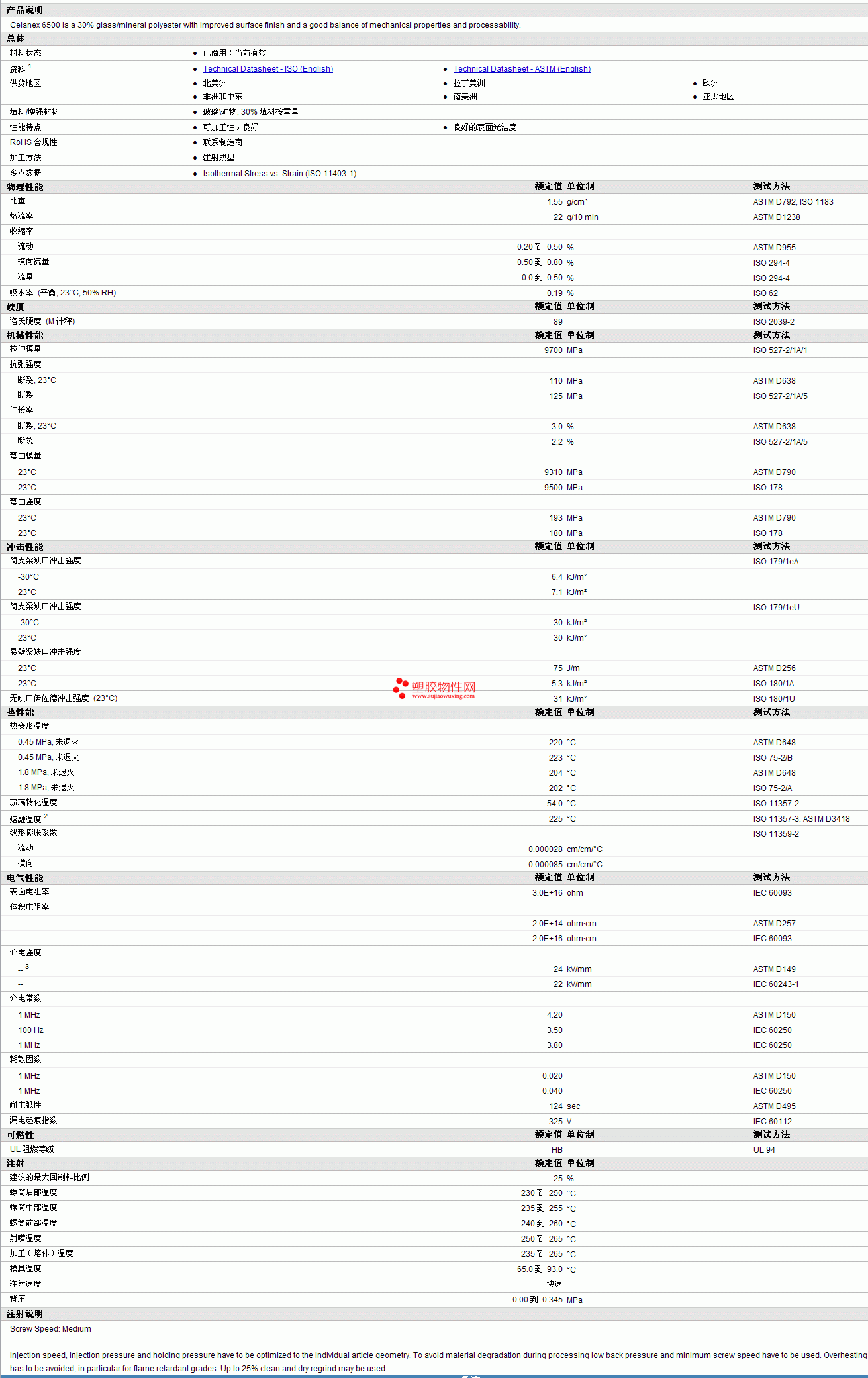 如需了解Celanex pbt 6500物性表更多详情,ROHS(SGS)报告、、材质证明、UL黄卡等,最新行情报价等可来电咨询:赵先生:13424755533 QQ:27660005