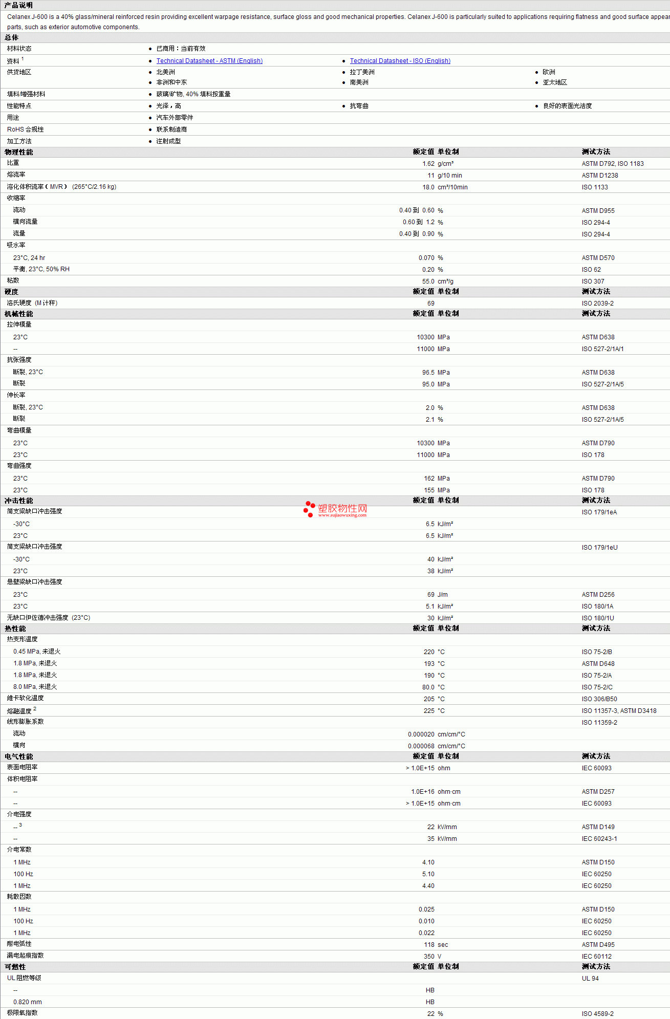 如需了解Celanex PBT J600物性表更多详情,ROHS(SGS)报告、、材质证明、UL黄卡等,最新行情报价等可来电咨询:赵先生:13424755533 QQ:27660005
