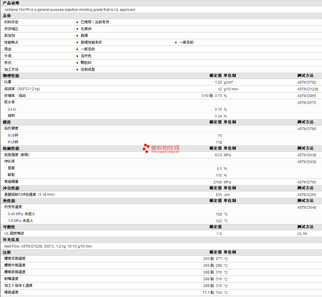 ASHLENE PC 1641R 物性表详细情况如图