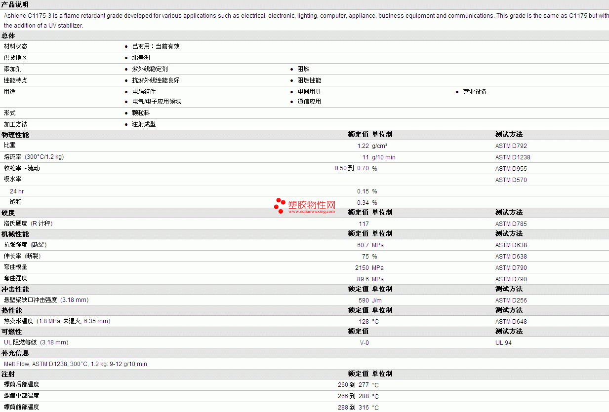 如需了解ASHLENE PC C1175-3物性表更多详情,ROHS(SGS)报告、物 材质证明、UL黄卡等,最新行情报价等可来电咨询或QQ:767320520